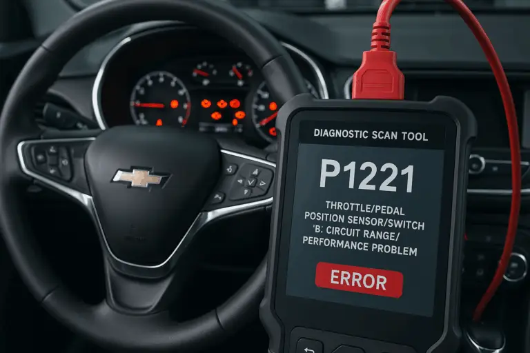 DTC P1221 in Chevrolet vehicles indicates a Position Sensor Overcurrent issue that affects suspension systems and potentially ADAS calibration. Learn the causes, symptoms, and how DFW Safety Restore in Cedar Hill, TX can help repair it.